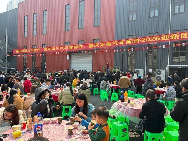“这是公司为员工们举办的团拜宴,宴席规模接近300人。”沉庆双凯汽车配件无限公司分析司理罗宏笑着说,此次宴席就正在厂区院坝举行,大师从车间出来,就能间接走到饭桌前品尝美食。
